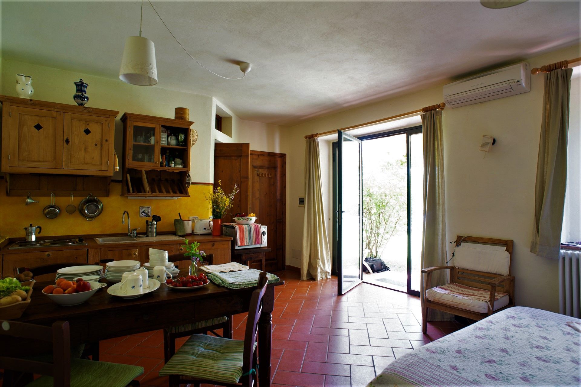 Pesco-Melograno è un comodo bilocale di circa 50m² adatto a famiglie fino a 5 persone o a gruppi di amici.